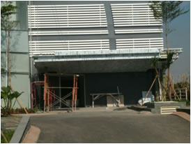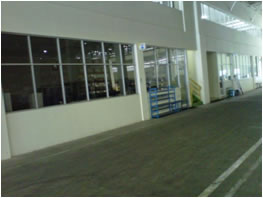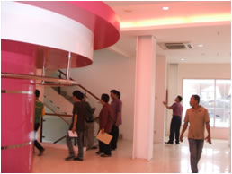 Pekerjaan : Curtain wall, kusen aluminium, kaca dan plafond gypsum